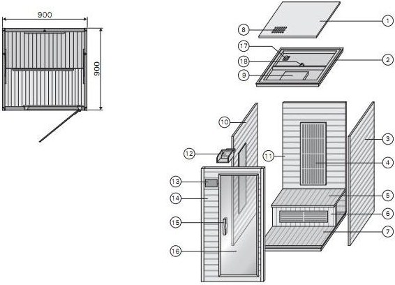 Современный дизайн инфракрасных саун также включает множество стеклянных поверхностей. Большие нагревательные элементы расположены таким образом, что длинные тепловые волны охватывают все части вашего тела. Так как сауна способствует интенсивному потению, то скамейки и пол необходимо защищать полотенцами. Скамейки легко снимаются для очистки.